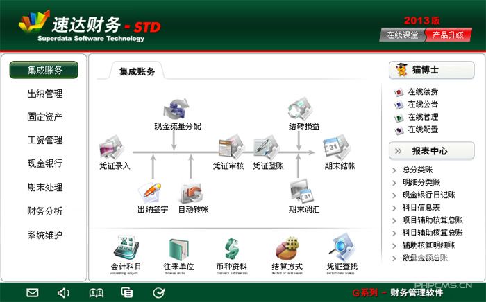 《速达财务-STD》是一款适用于各类生产和贸易企业的财务管理系统。秉承易学易用设计原则,全局应用模式在速达财务中的应用尽显优越,全面支持局域网/互联网应用、集团数据整合共享,帮助企业提供财务管理、出纳管理、票据管理、工资管理、固定资产管理、存货管理、坏账管理、预算管理、合并报表等全面解决方案。