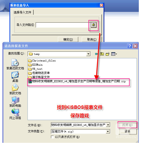 确定后,将显示以下操作窗口,供用户选择已经制作成的KISBOS报表文件的存放路径: