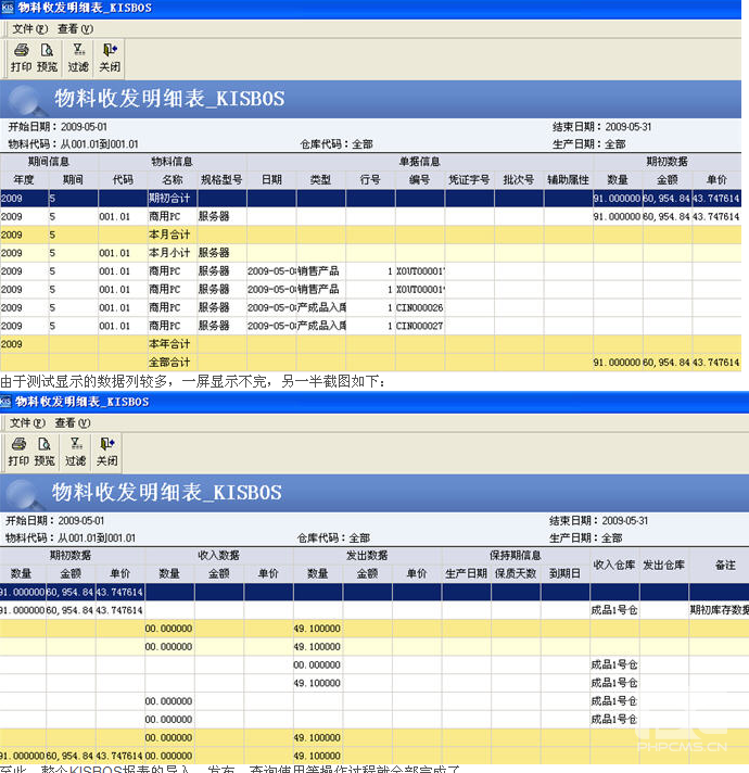 至此,整个KISBOS报表的导入、发布、查询使用等操作过程就全部完成了。