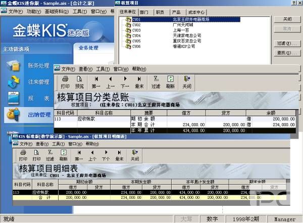 同时,借助核算项目,可以实现对往来账的管理。客户和供应商是企业价值链上的两个重要环节。加强对单位往来的管理,不仅有利于加强对于往来款项的管理,减少坏账损失,加速资金周转,提高企业经济效益,而且有利于营造一个高增值的价值链,为企业的长期、快速发展提供良好的经营环境。使用金蝶KIS迷你版的往来管理,实现对企业财务活动的事中控制。