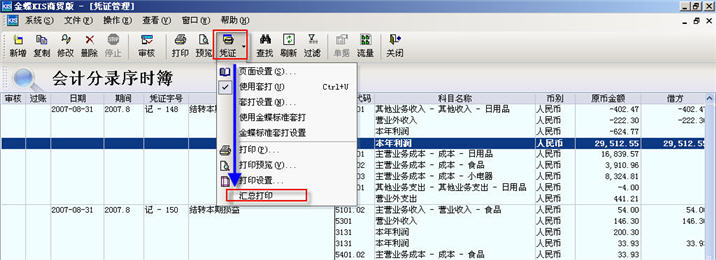 在KIS商贸版1.2中,客户在打印凭证时,希望能只打印一级科目,而不需要打印出所有明细科目。