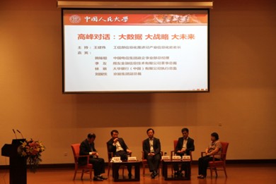 5月22-23日,2013(首届)中国CIO论坛在中国人民大学举办,来自各界的专家、企业家济济一堂,共同探讨大数据与国家战略、企业战略、信息战略与企业改革、商业创新、金融创新等相辅相成之道。用友金融信息技术有限公司(简称“用友金融”)总裁李友作为论坛嘉宾与中国电信集团政企事业部总经理韩臻聪、大华银行(中国)有限公司执行总监林丽、京能集团副总裁刘国忱高峰对话 “大数据、大战略、大未来”。