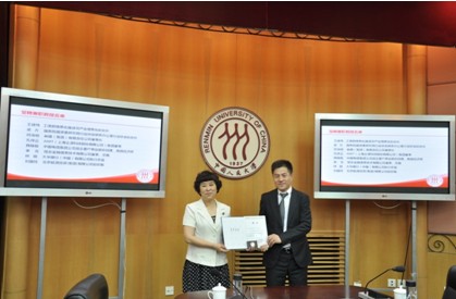 中国人民大学冯惠玲副校长为用友金融总裁李友颁发受聘证书